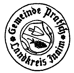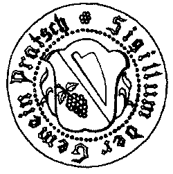 Umschrift "Sigillum der Gemein Pratsch" einen schräggeteilten